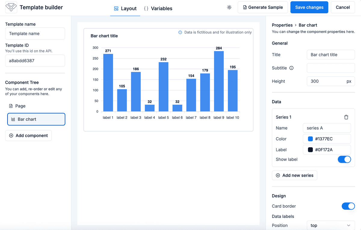 If you prefer a no-code solution, pdf noodle offers a template builder that allows you to generate charts inside PDFs without any coding.